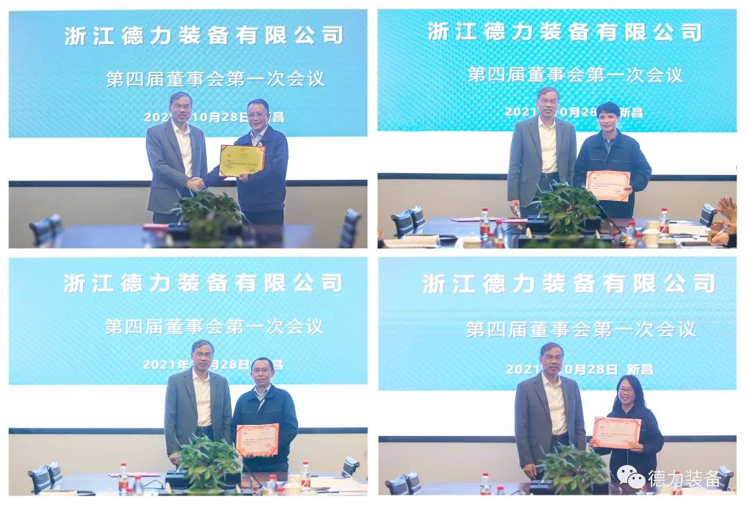 2021年10月28日下午,浙江德力裝備有限公司在新和成股份有限公司一樓會(huì)議室召開(kāi)了2021年第一次臨時(shí)股東會(huì)、四屆一次董事會(huì),順利完成了董事會(huì)、監(jiān)事會(huì)的換屆選舉及高級(jí)管理人員的換屆聘任。