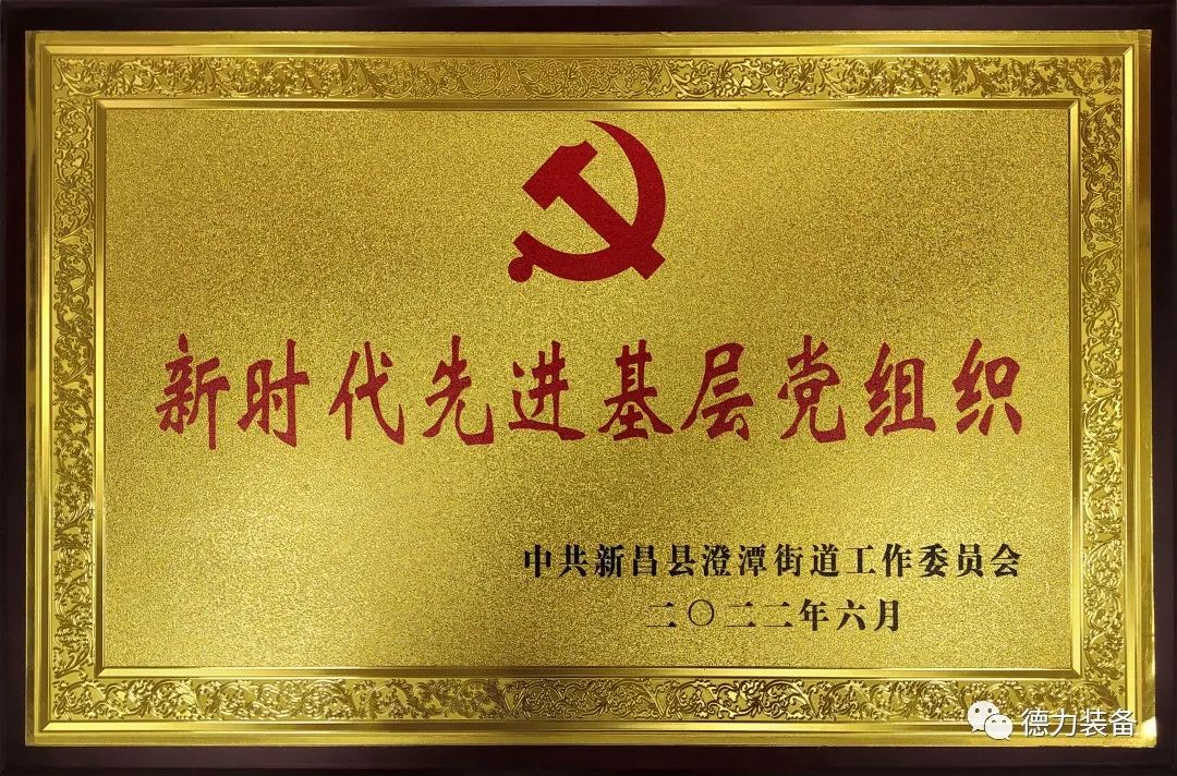 日前,德力裝備黨支部被澄潭街道工委授予“新時(shí)代先進(jìn)基層黨組織”榮譽(yù)稱號(hào)。